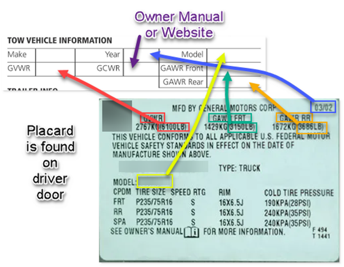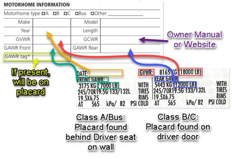 You can use the diagram to fill out the information from the placard. If you have a tag axle, the tag information will be on the placard, similar to the REAR GAWR.